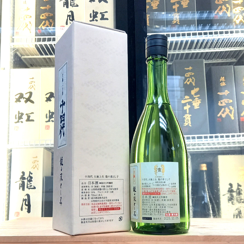 “十四代大極上”是高木酒造其中一個大賣系列, 「大極上」是十四代非常之有故事性的原生酒,她突出了「生酒」的優點,注重新鮮可以突顯果香。 釀酒法是「槽垂れ」。意思是由沒有過濾的原生酒放入過濾袋釀造,這樣會提升原生酒的口感層次。這瓶大極上有典型十四代層次的口感,帶微微果香, 容易入口,每年都深受很多女性客戶垂青。建議冷飲或常溫。