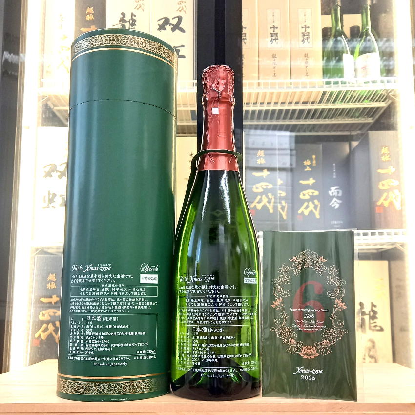 新政 No.6 Xmas-type Spark 是秋田縣新政酒造推出的聖誕限定起泡清酒,採用 100% 秋田縣產“秋田酒小町”酒米,精米步合 55%,酒精濃度 11%,容量 750ml,綠色瓶身設計充滿聖誕氛圍。