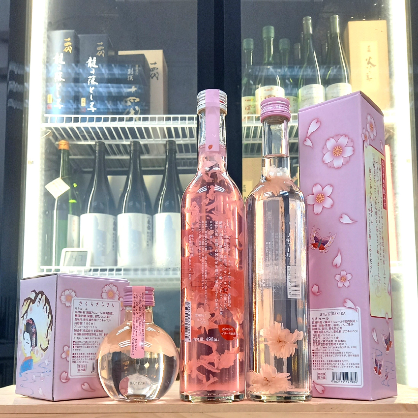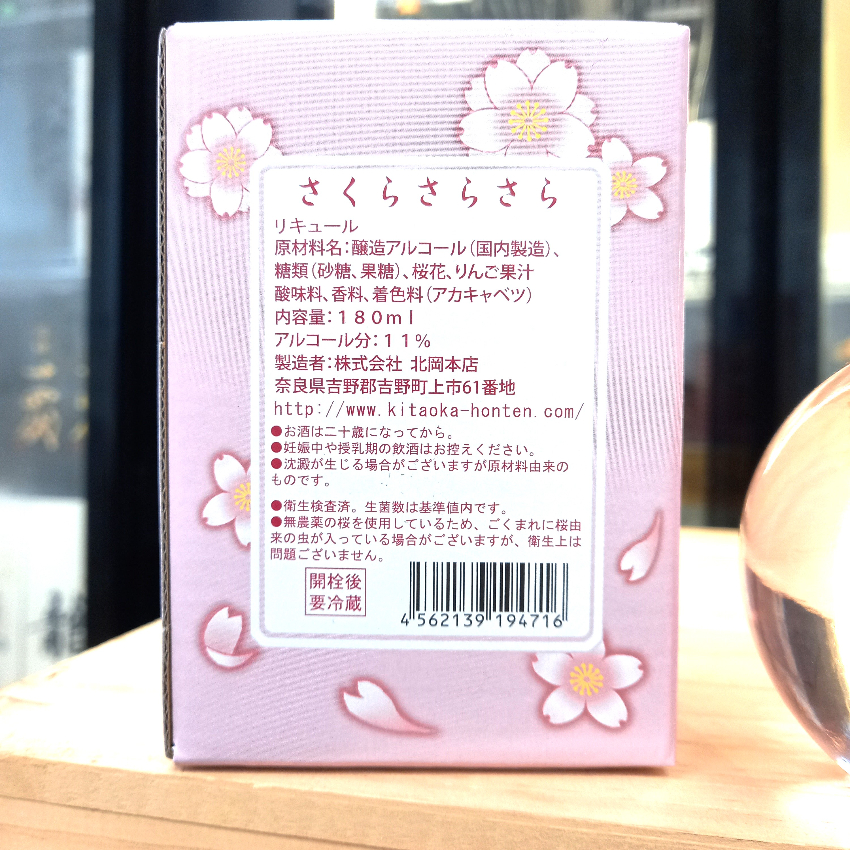 這款來自日本奈良北岡本店的櫻花利口酒,選用吉野山天然櫻花浸泡釀造,酒精度 11 度,瓶中可見三朵完整櫻花,粉潤酒色十分動人。